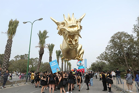 В праздничном шествии шли десятки эффектных персонажей известных сказок всех времен - единороги, Шошана, Барби и Кен, а также жонглеры и сотни танцоров танцевальных коллективов Ашкелона.