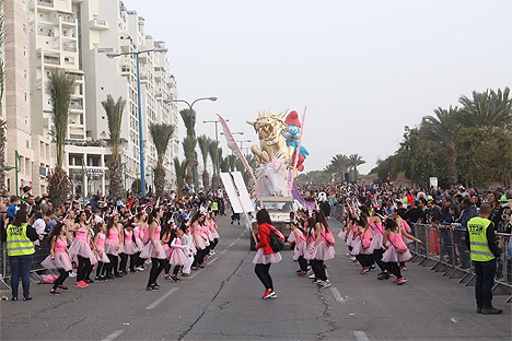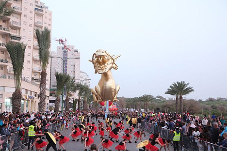 Жители Ашкелона и окрестностей приняли участие сегодня в праздновании Пурима. Десятки тысяч людей пришли на праздничный парад с гигантскими надувными фигурами сказочных героев Немо, Золотого Дракона, Папа Смурф и Бенц с парада «Мейсис», известного в Нью-Йорке.
