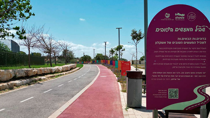 На этой неделе муниципалитет Ашкелона завершил установку «Тропы добрых дел» в Экопарке Ашкелона — уникального общественного проекта, посвященного ценностям щедрости, социальной активности и помощи другим.