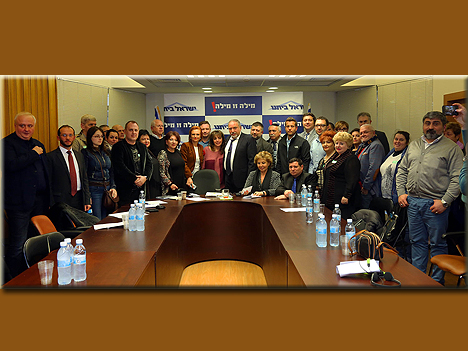 Министр обороны, глава партии НДИ Авигдор Либерман встретился в Кнессете с зарубежными журналистами русскоязычных СМИ, прибывшими на празднование 115-летия Еврейского национального фонда (Керен каемет ле-Исраль – ККЛ). Делегацию составили журналисты и руководители средств массовой информации из США, Канады, Германии, Австралии, России, Украины и Азербайджана.