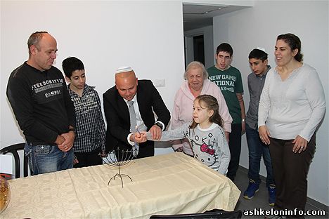 Вечером в воскресенье мэр Итамар Шимони в честь Хануки посетил ряд семей, которые переехали в Ашкелон.