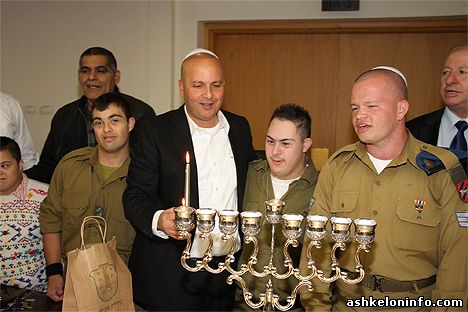Мэр принял участие в Церемонии зажжения первой ханукальной свечи с солдатами, участвующими в программе, «שווים במדים», организованной ассоциацией «Акима», а также в семьях, которые переехали жить в Ашкелон.