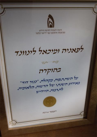 4-го декабря 2016 г. в тель-авивском зале «Ган-а-ир» состоялась церемония вручения Премий Национального Управления по культуре идиш.