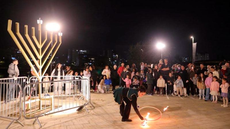 Зажигание первой свечи, захватывающее шоу дронов и развлечения для всей семьи – так Ашкелон открыл праздник Хануки 2025 года.