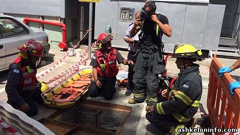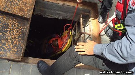 Спасательные команды из Ашкелона были вызваны для спасения человека, который провалился в люк на глубину трех метров позади торгового центра «Хуцот». Спасение пострадавшего проводили с реальной опасностью для его жизни из-за недостатка кислорода в яме, в которой он находился.