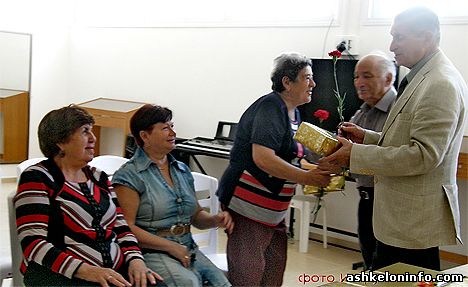 Мужская часть дружного актива Ашкелонской ветеранской организации во главе с Е. Рабовским подготовила новый сценарий, по которому женщинам было предложено сесть, а мужчины, как истинные джентльмены, не присели, пока шла торжественная часть церемонии. Стоя они произносили приветствия и пожелания дамам, Анатолий Староконстантиновский прочитал свои стихи.