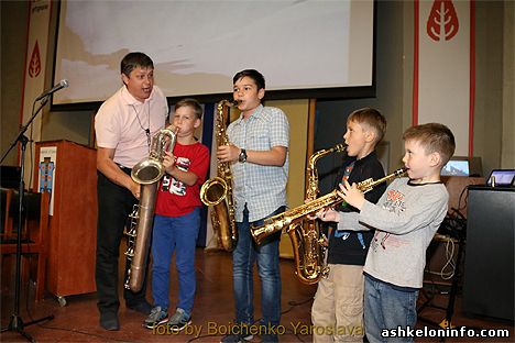 После этого он пригласил на сцену детей и каждый ребенок попробовал себя в роли саксофониста.