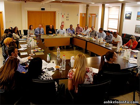 Во встрече, которая состоялась в среду, приняли участие: мэр города Итамар Шимони, первый зам мэра Томер Глам, зам мэра Эфи Мор, зам мэра Алик Солтанович, вице мэр Шабтай Цур, ген директор муниципалитета Хаим Софер и др.