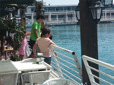 Мы часто наблюдаем на Марине сцену, когда маленькие дети, перелезая через перила и заграждения, пытаются разглядеть и покормить рыбок.