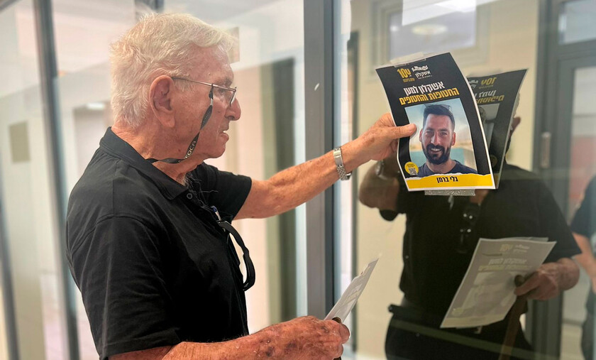 Гад Соболь прибыл в мэрию сегодня (в среду) и с большим волнением снял фотографии своих внуков, Зива и Гали Берман, которые вернулись из плена ХАМАС спустя два года.
