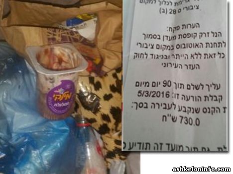 Ответ Ашкелонского муниципалитета: «Подросток был оштрафован на сумму 730 шекелей после того, как был уличен муниципальным инспектором за то, что бросил опустошённый пластиковый стаканчик на тротуар.