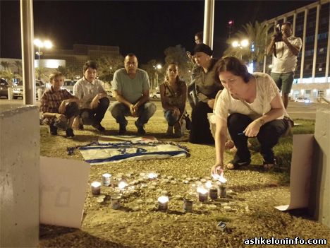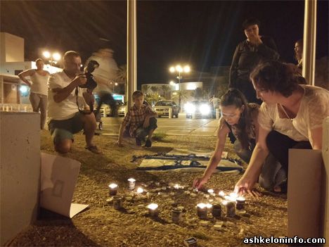 Сегодня вечером прошла акция ашкелонцев на площадке у Яд ле-Баним по зажжению свечей в память о жертвах среди мирных жителей в последние дни.