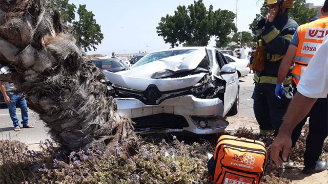 Мужчина 30-ти лет пострадал в автомобильной аварии на бульваре Дэвид Бен Гурион, возле муниципальной библиотеки.