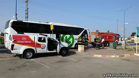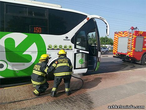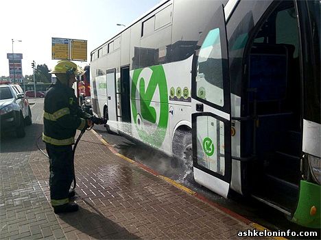 Водитель сразу же остановил автобус возле остановки на проспекте Бен-Гурион на перекрестке Нахаль (возле торгового центра «Хуцот») и вызвал бригаду пожарных.