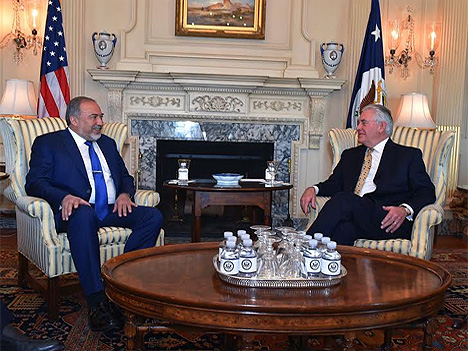 Министр обороны Авигдор Либерман встретился вчера в Вашингтоне с государственным секретарем США Рексом Тиллерсоном. Либерман и Тиллерсон обсудили ряд вопросов, касающихся израильско-американских отношений, а также темы, стоящие на повестке дня двух стран.